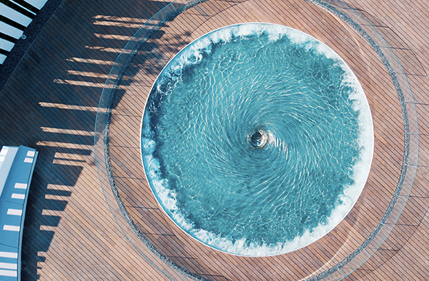 水本無形,它的物理特性讓它能輕易地跟隨容器而呈現不同的面貌。獨特的延展性使得水能呈現無以計數的不同效果。燈光的布置,介質的紋理,顏色和動態都能給水帶來無窮的變化